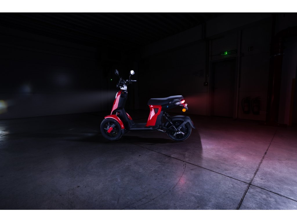 Dvě přední kola zajišťují skvělou stabilitu celé motorky. Ta váží včetně baterie pouhých 90 kg, a proto nebude ani případná manipulace s motorkou náročná jako u robustnějších modelů. Nosnost dosahuje 150 kg. Tvar i velikost sedáku přispějí k vašemu celkovému pohodlí během jízdy.