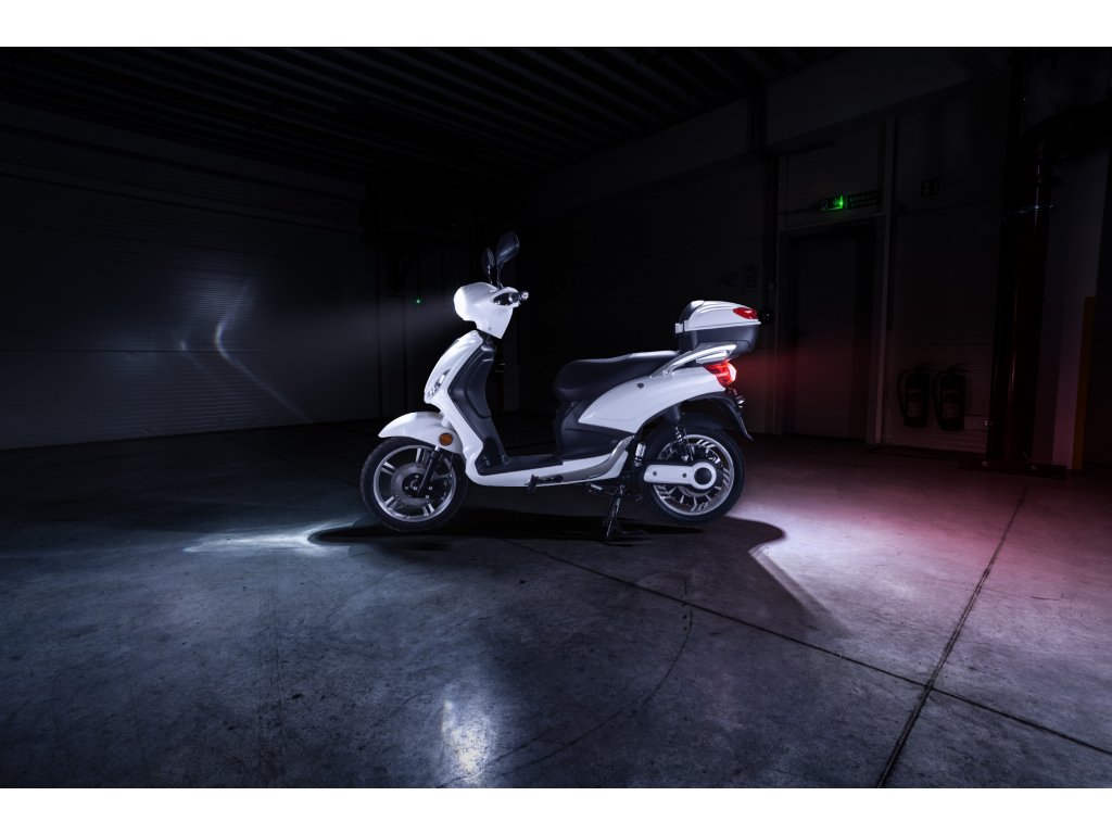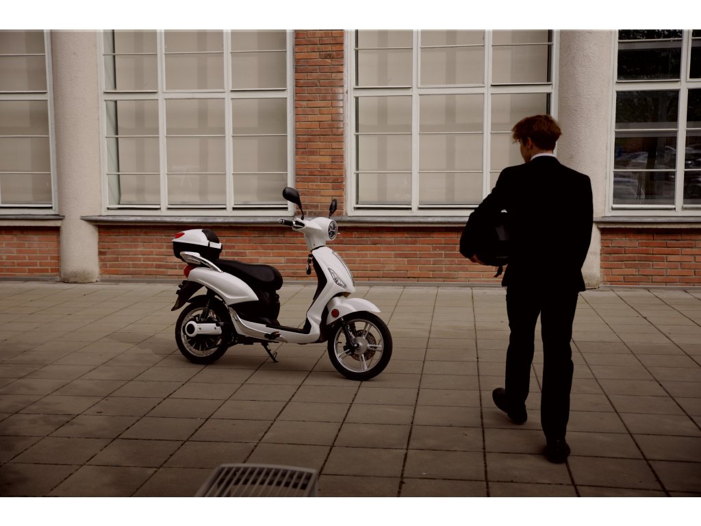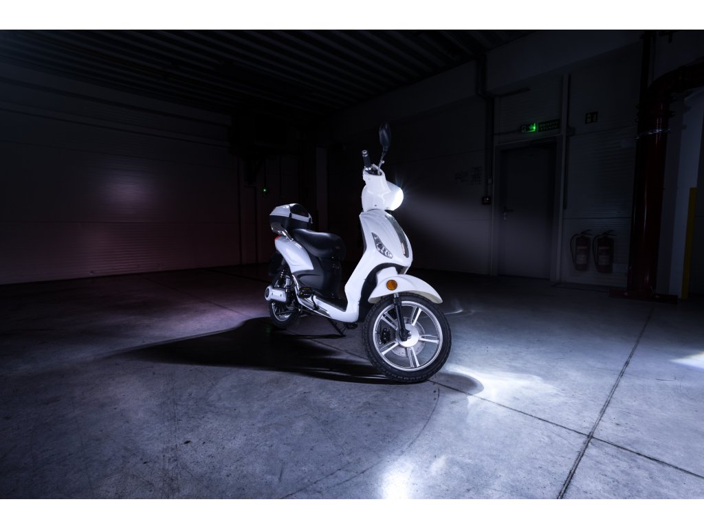Elektroskútr Riga 1000 W je jako dělaný na míru pro jízdu do města. Vyznačuje se čistými designovými liniemi, kterým dominuje přední kulaté světlo. Tento skútr je ideální parťák na dopravu po městě pro mladou i starší generaci. Nikdy vás nezklame. Vstupte do světa elektrických motorek a skútrů právě na kolech ViaGo Riga. Užijete si pohodlnou jízdu osvětlenou nepřehlédnutelným předním světlem.