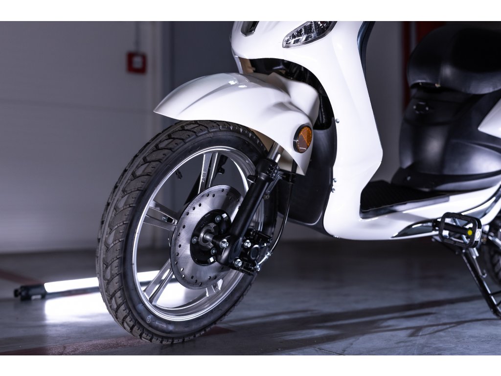 Elektrický skútr Riga 1000W s maximální rychlostí 45Km/hod je jako dělaný na míru pro jízdu jak do města, tak vesnici. Dojezd až 100 km umožňuje i delší cesty. Vyznačuje se čistými designovými liniemi, kterým dominuje přední kulaté světlo.